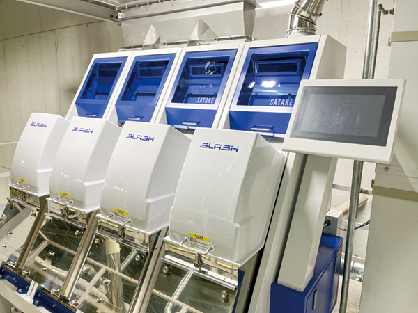 複数台の光学式選別機で着色粒・被害粒・異物等を除去します。